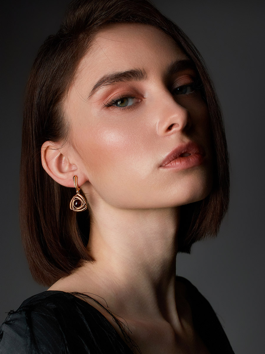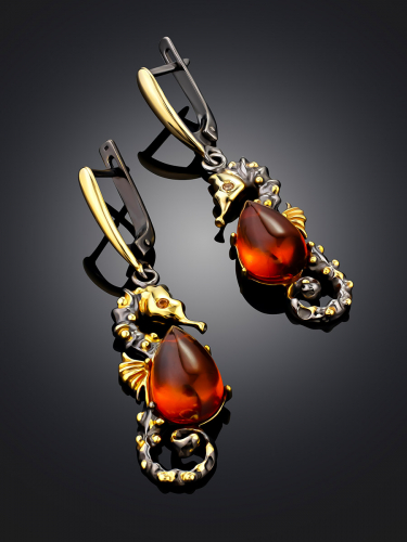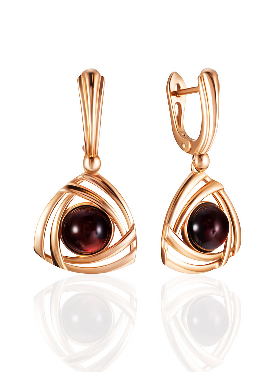 Серьги с треугольными подвесками «Мистраль», украшенные вишнёвым янтарём