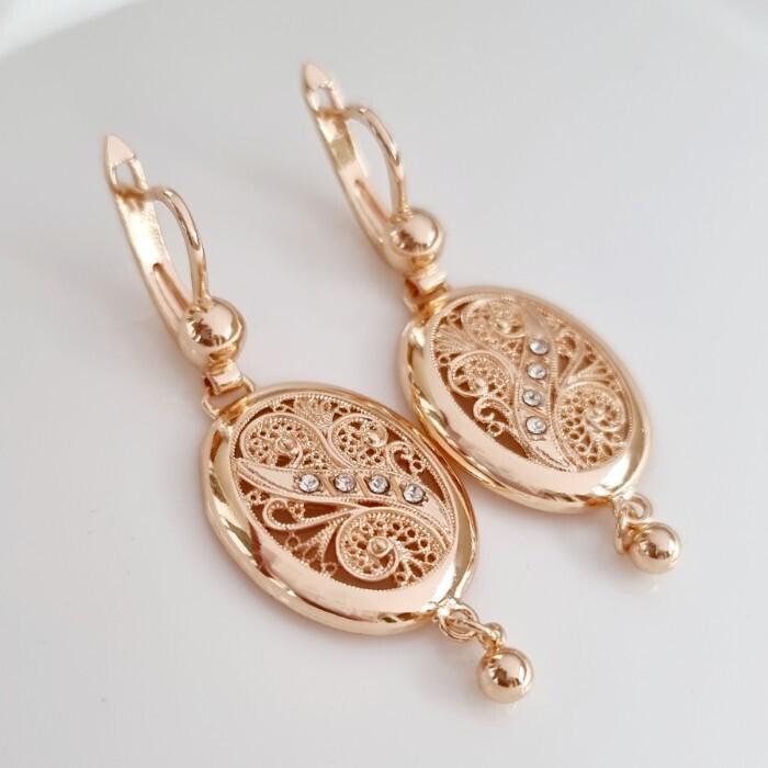 Серьги самовары ювелирная бижутерия Дубайское золото, с покрытием позолотой 18К, вставка: фианит, цвет: прозрачный, арт.215.155