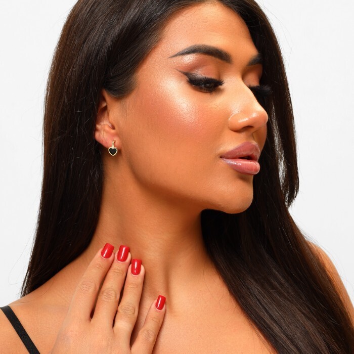 Серьги сердце ювелирная бижутерия Итальянское золото (покрытие желтое 14к), вставка: цветная эмаль, цвет: черный, арт.213.129