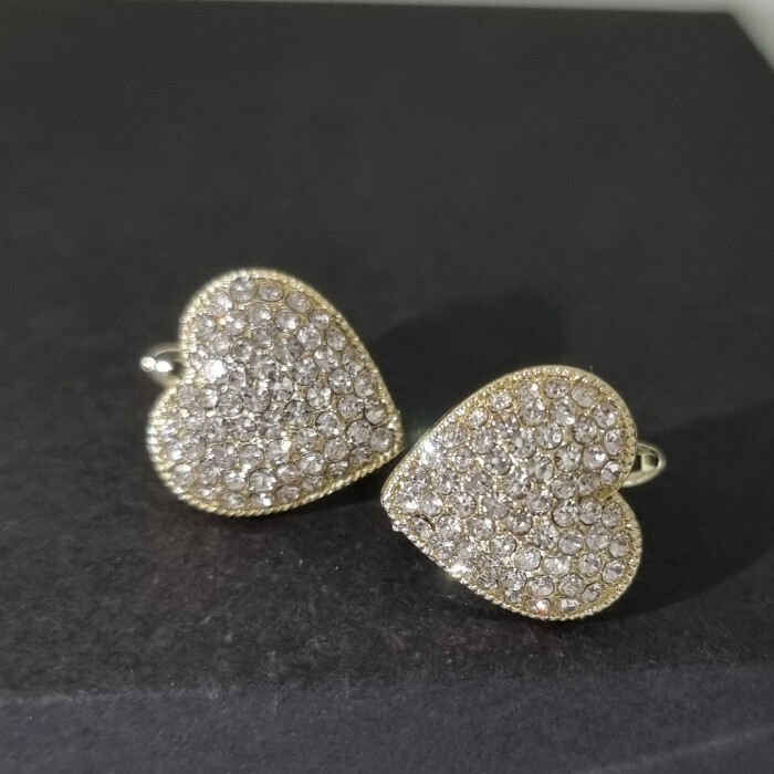 Серьги сердце ювелирная бижутерия Итальянское золото (покрытие желтое 14к), вставка: фианит, цвет: прозрачный, арт.217.194