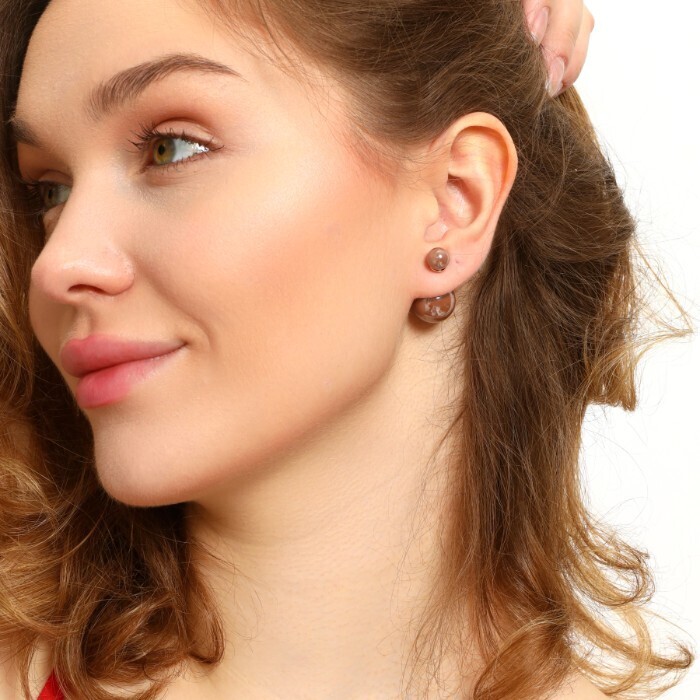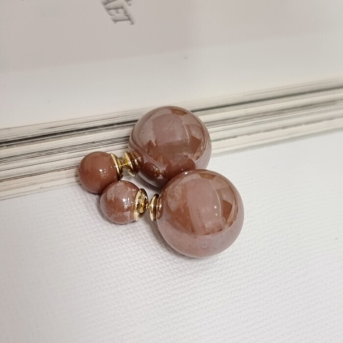 Серьги шарики ювелирная бижутерия в стиле диор, цвет: бледно-коричневый, арт.101.155