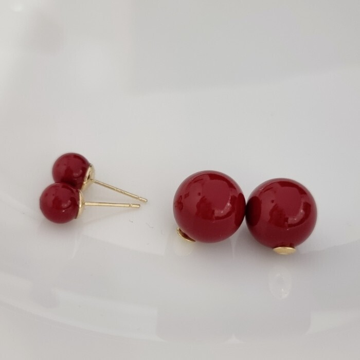 Серьги шарики ювелирная бижутерия в стиле диор, цвет: бордовый, арт.101.157