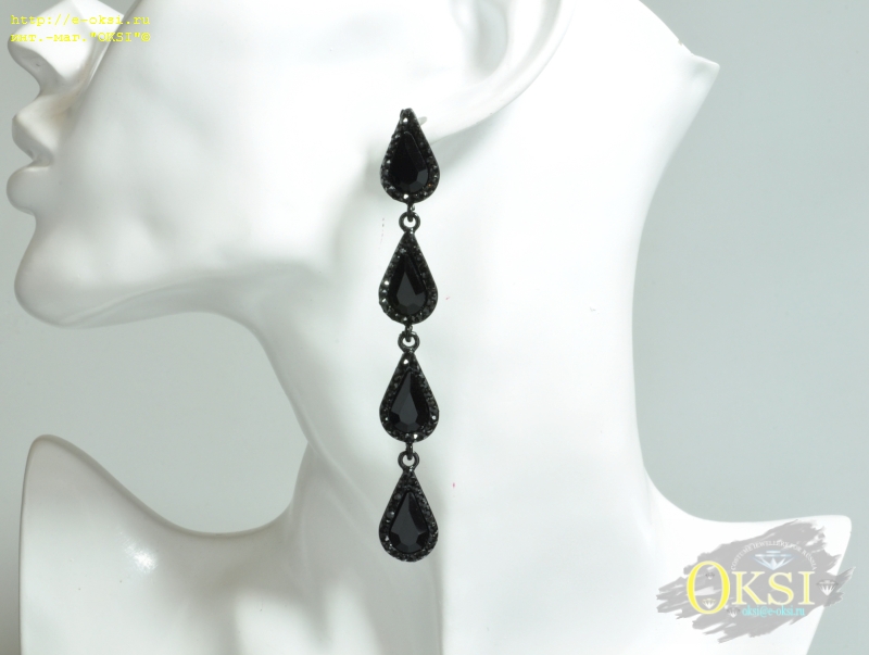 Эффектные, длинные серьги с крупными сверкающими черными кристаллами. Фото не отображает блеск и красоту украшения.Длина серьги 9,5 см. Качественное родиевое покрытие черного цвета. Черный цвет – цвет ночи и классики, утонченности и таинственности , мистики и магии. Этот цвет крайне неоднозначен, но он всегда в моде, и зимой и летом - он всегда на пике популярности. Черный цвет в украшениях является базовым и подходит практически к любому цвету одежды или аксессуаров.