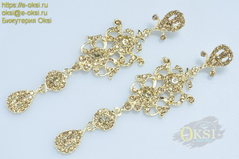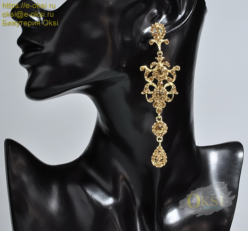 Великолепные, длинные серьги украшены сверкающими кристаллами янтарного оттенка. Фото не отображает блеск и красоту украшения.Длина серьги 10,5 см. Качественное гальваническое покрытие золотого цвета. Золотой цвет - самый популярный и привлекательный цвет в украшениях, сочетающийся практически со всеми оттенками цветовой палитры в одежде и аксессуарах