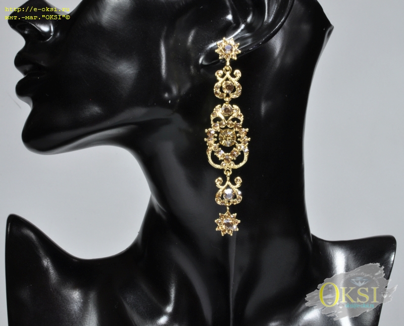 Очень красивые, ажурные серьги украшены сверкающими кристаллами янтарного оттенка. Фото не отображает блеск и красоту украшения.Длина серьги 8 см. Качественное гальваническое покрытие золотого цвета. Золотой цвет - самый популярный и привлекательный цвет в украшениях, сочетающийся практически со всеми оттенками цветовой палитры в одежде и аксессуарах
