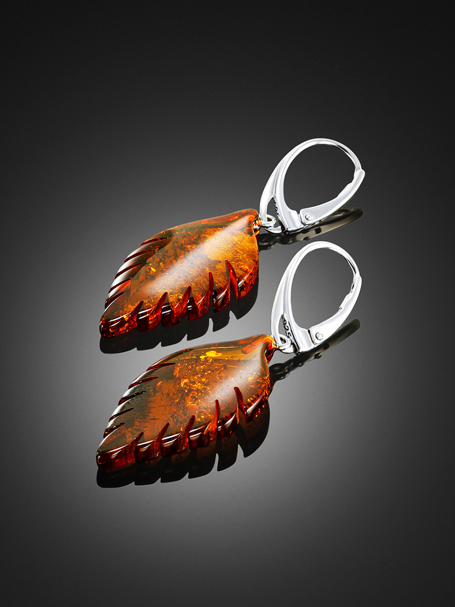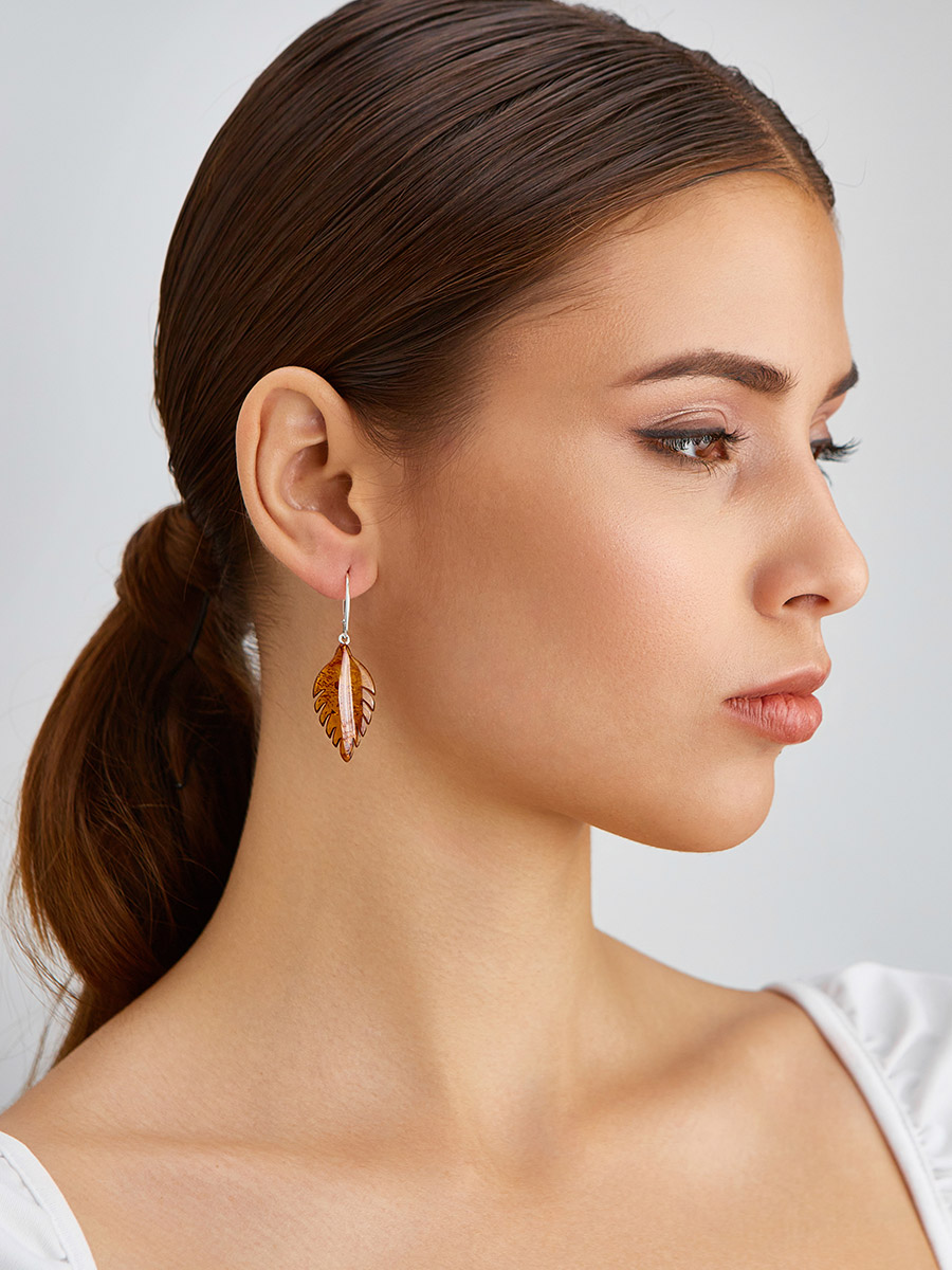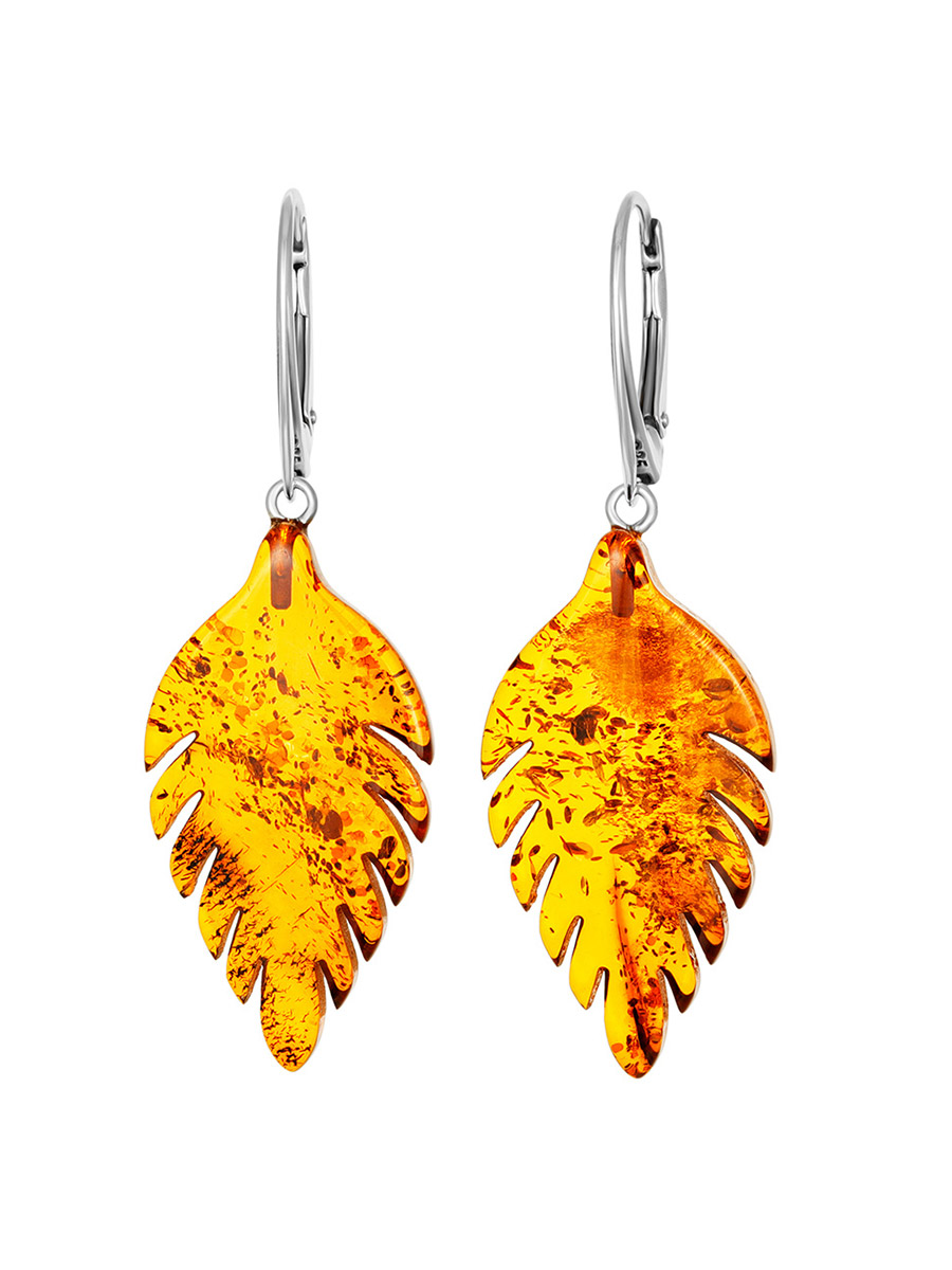 Серьги со вставками из натурального цельного янтаря «Листочки»