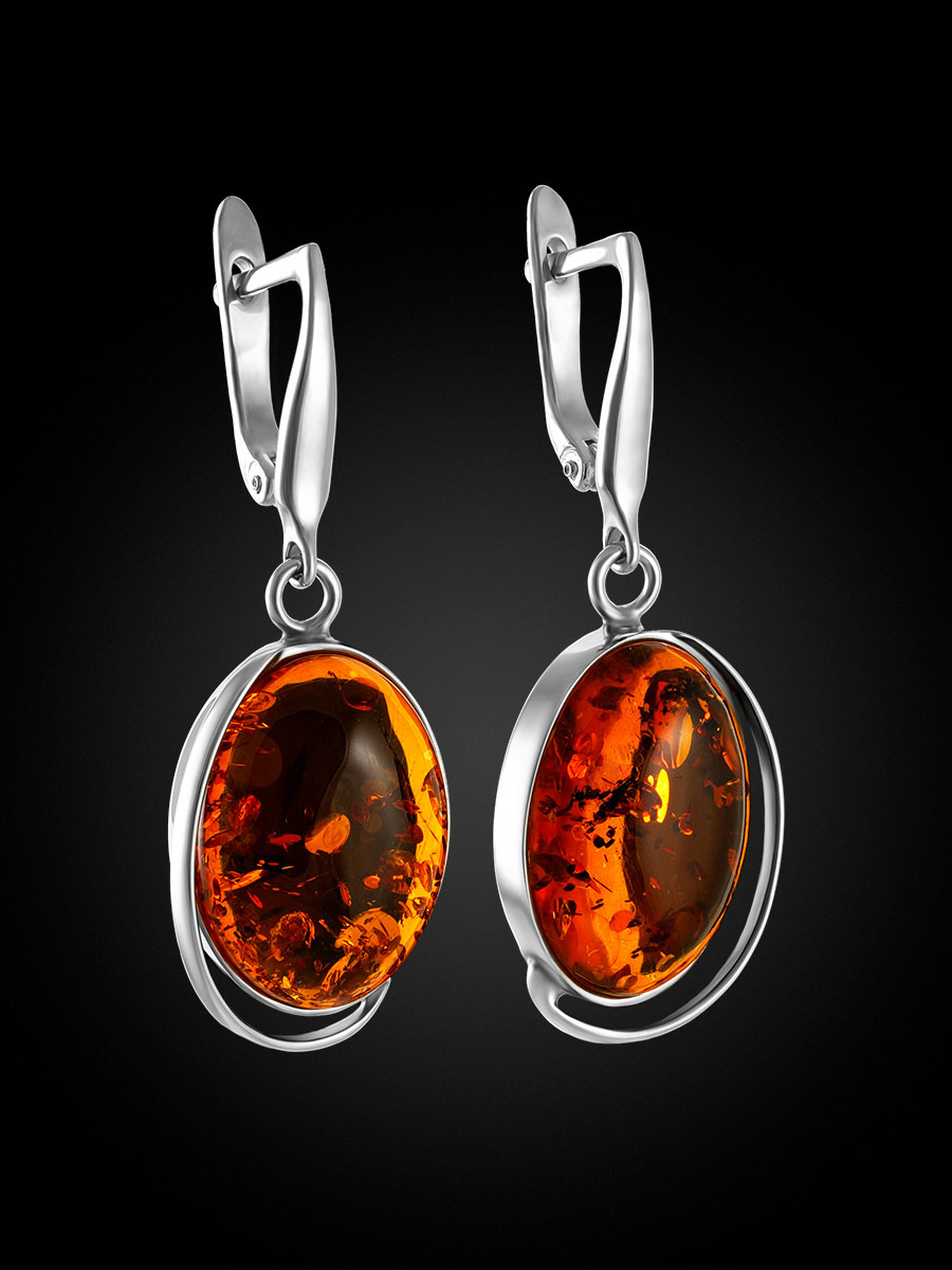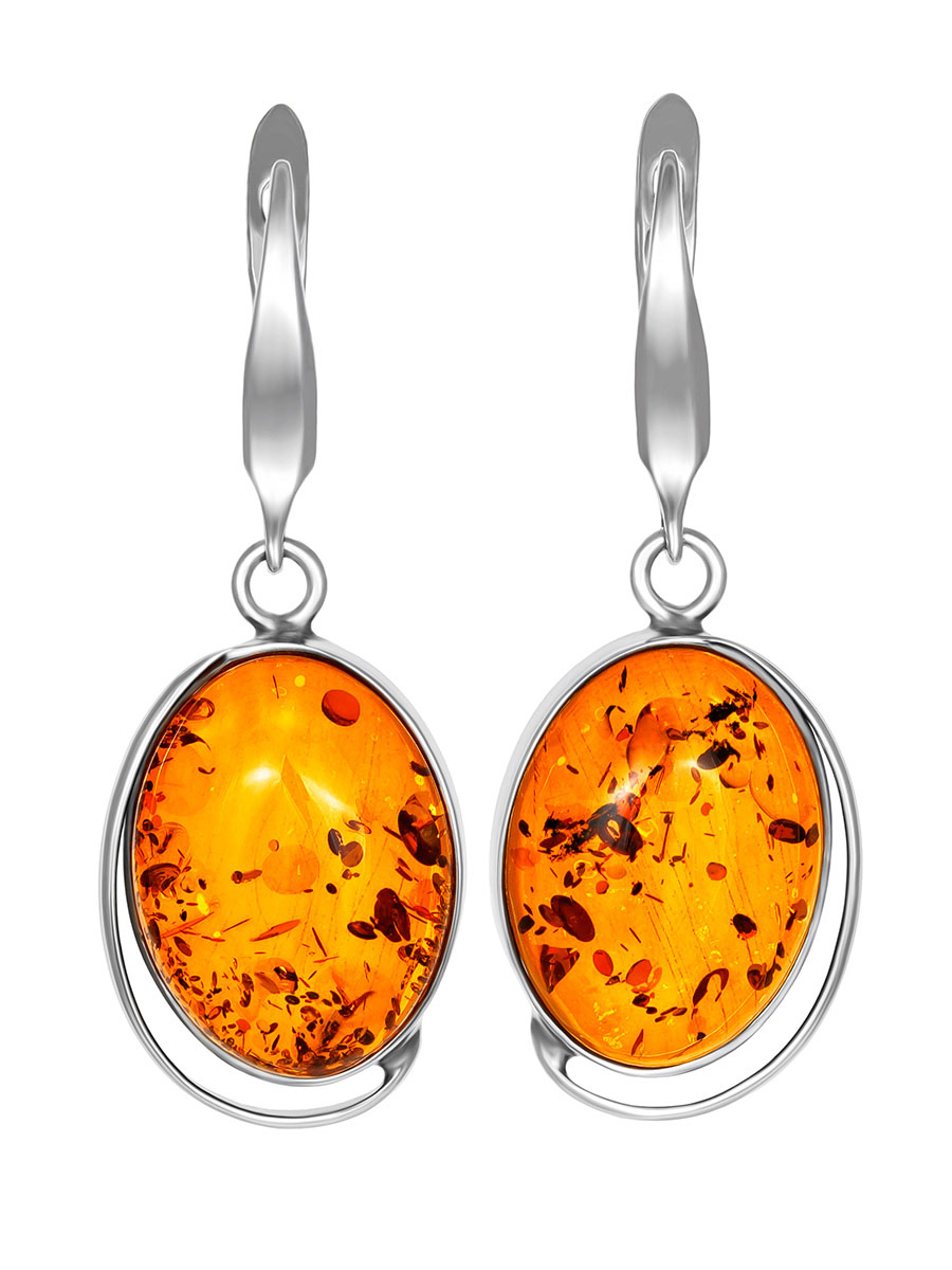 Серьги со вставкой из натурального янтаря коньячного цвета «Лагуна»