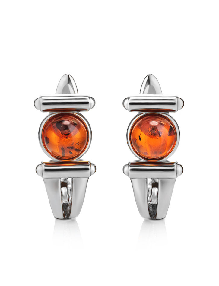 Серьги, украшенные коньячным янтарём «Аркадия»