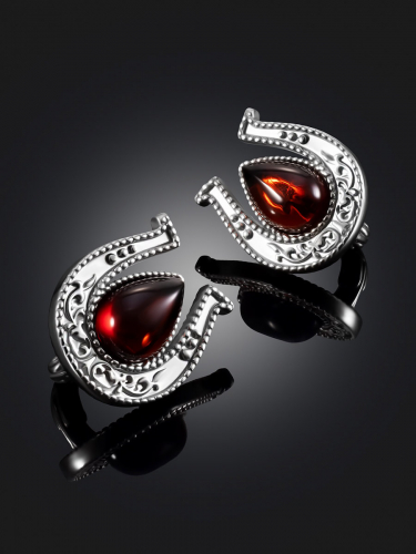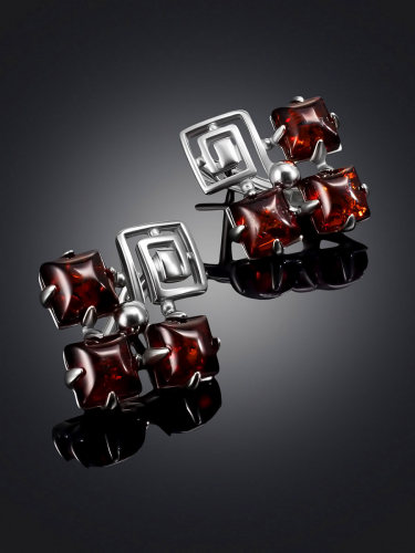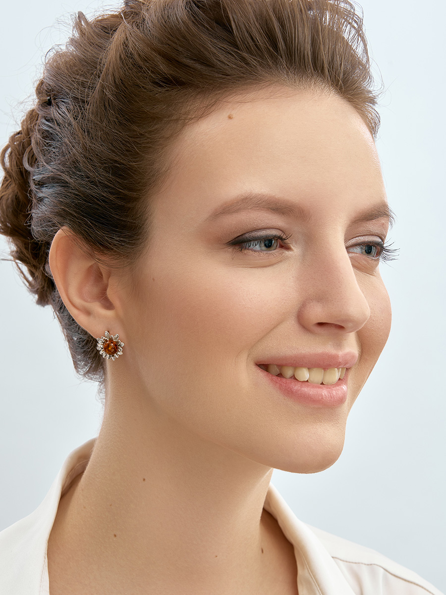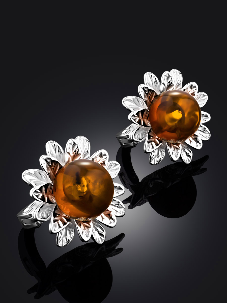 Серьги, украшенные натуральным балтийским янтарём коньячного цвета «Астра»