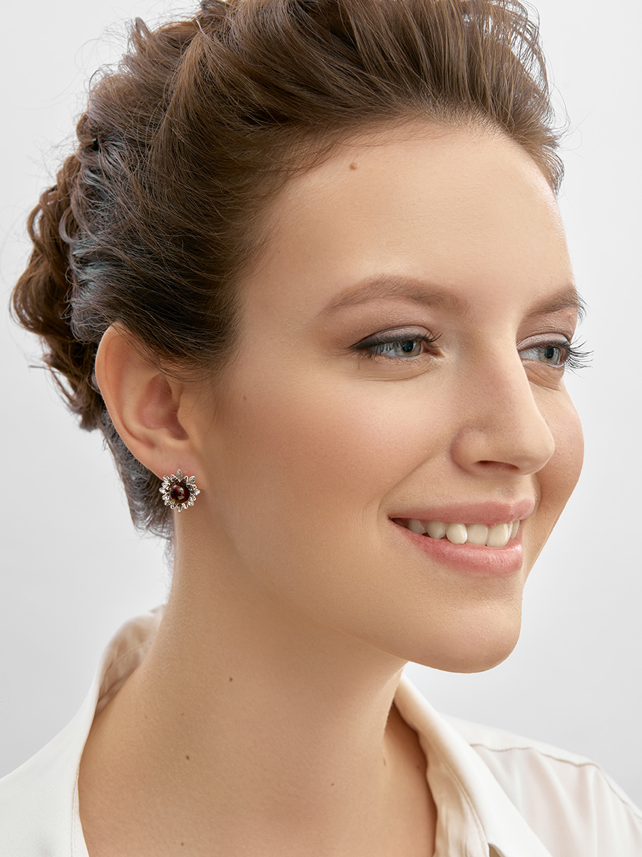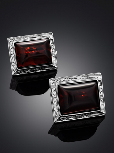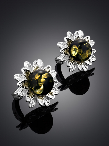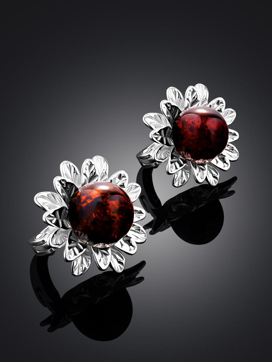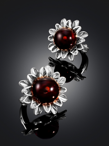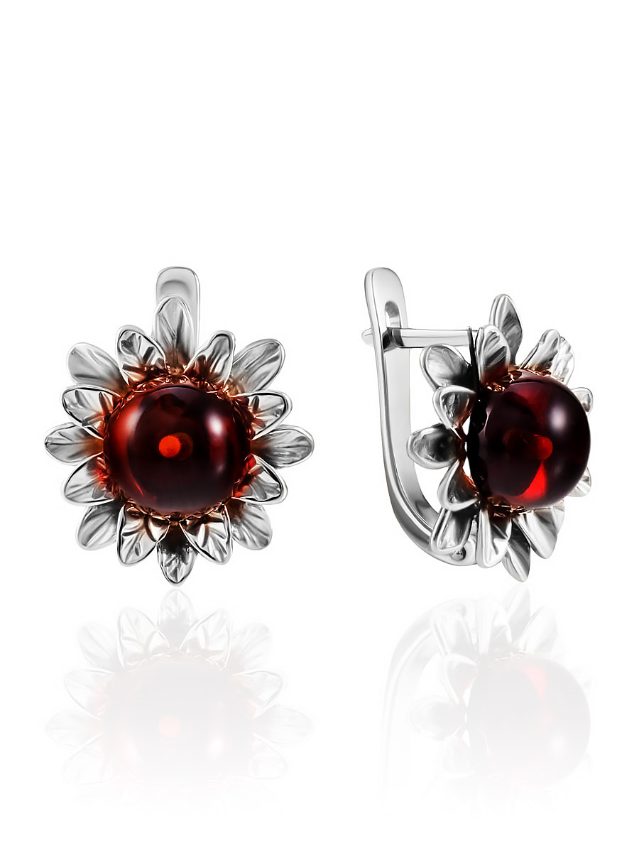 Серьги, украшенные натуральным янтарём вишнёвого цвета «Астра»