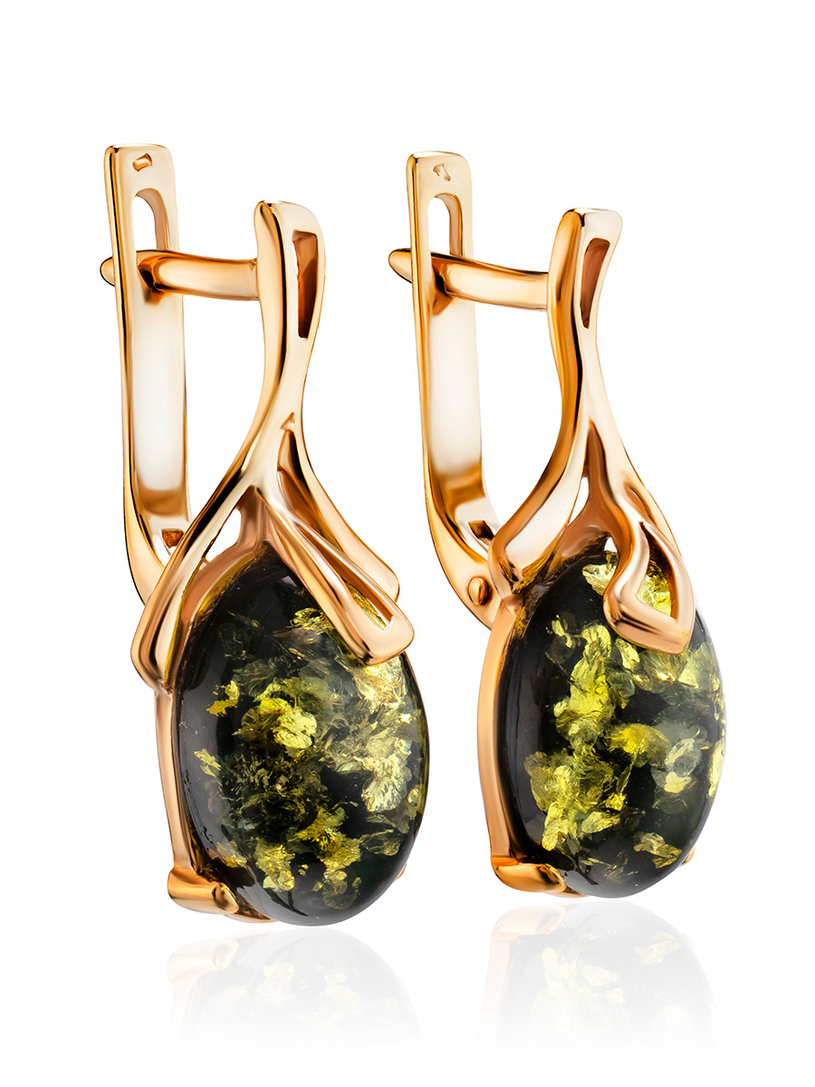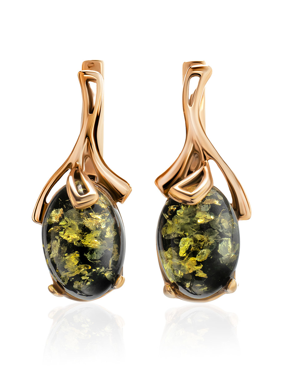 Серьги, украшенные натуральным зелёным янтарём «Крокус»