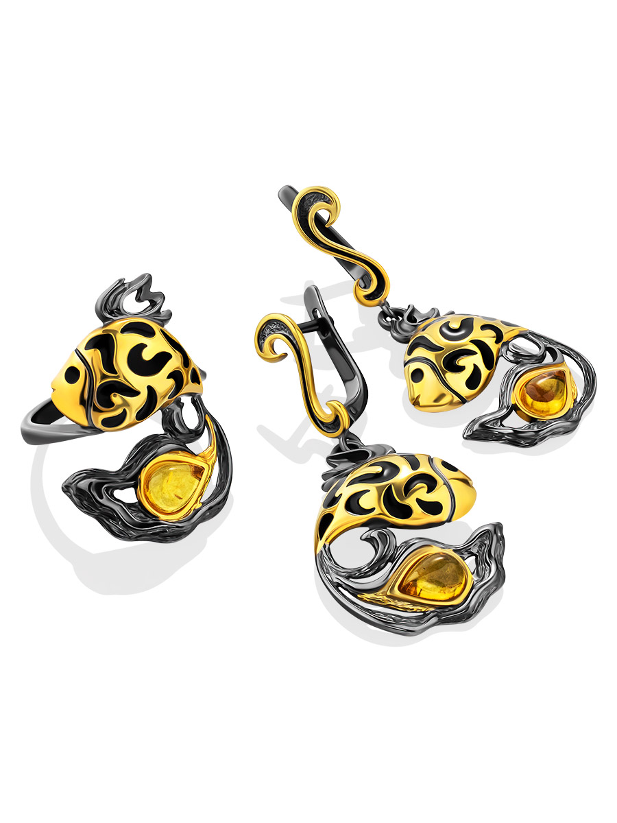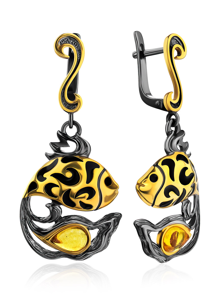 Серьги в анималистическом дизайне с натуральным янтарём «Рыбка»
