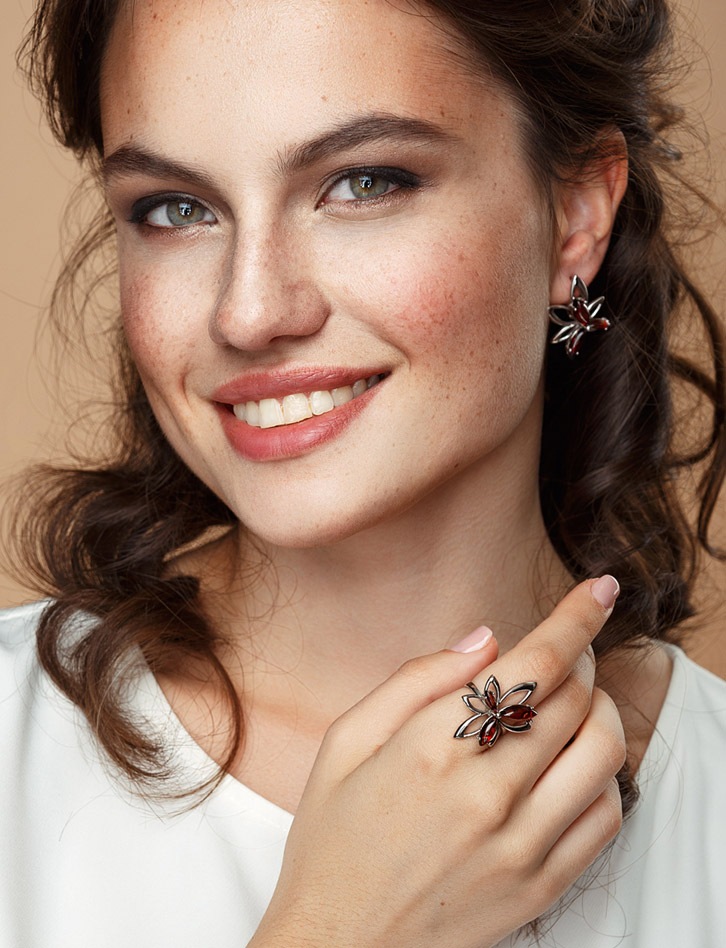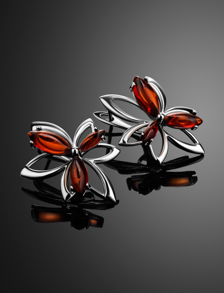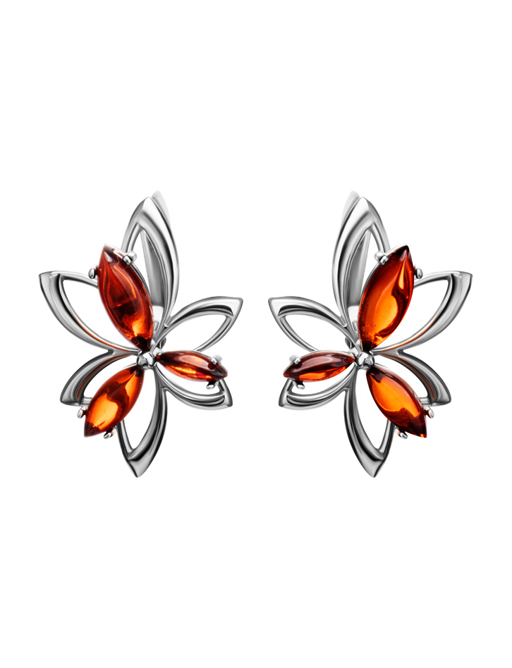 Серьги в цветочном дизайне с натуральным коньячным янтарём «Нарцисс»
