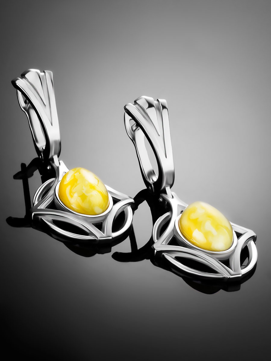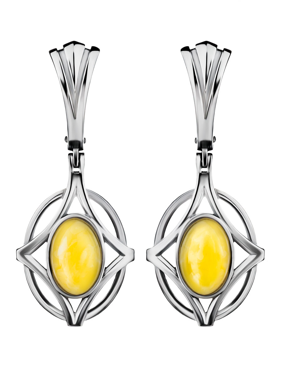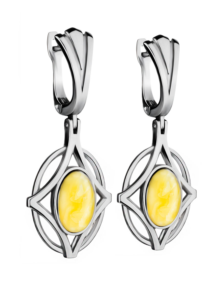 Серьги в необычном дизайне из янтаря медового цвета «Буссоль»