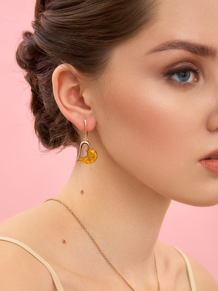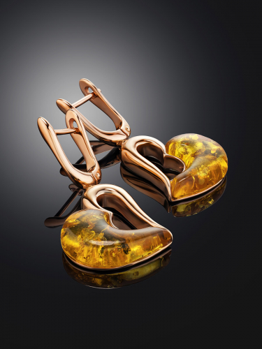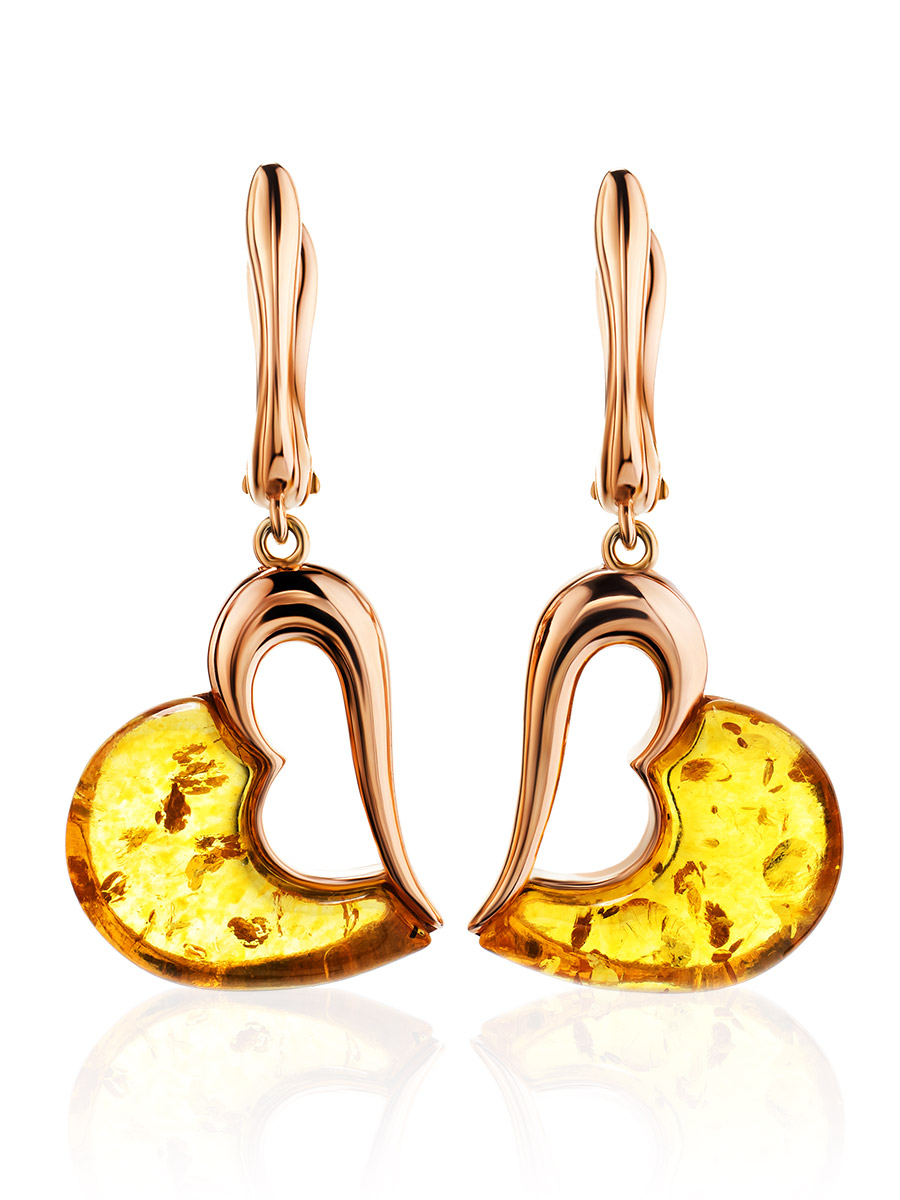 Серьги в виде сердца «Санрайз» с лимонным янтарём