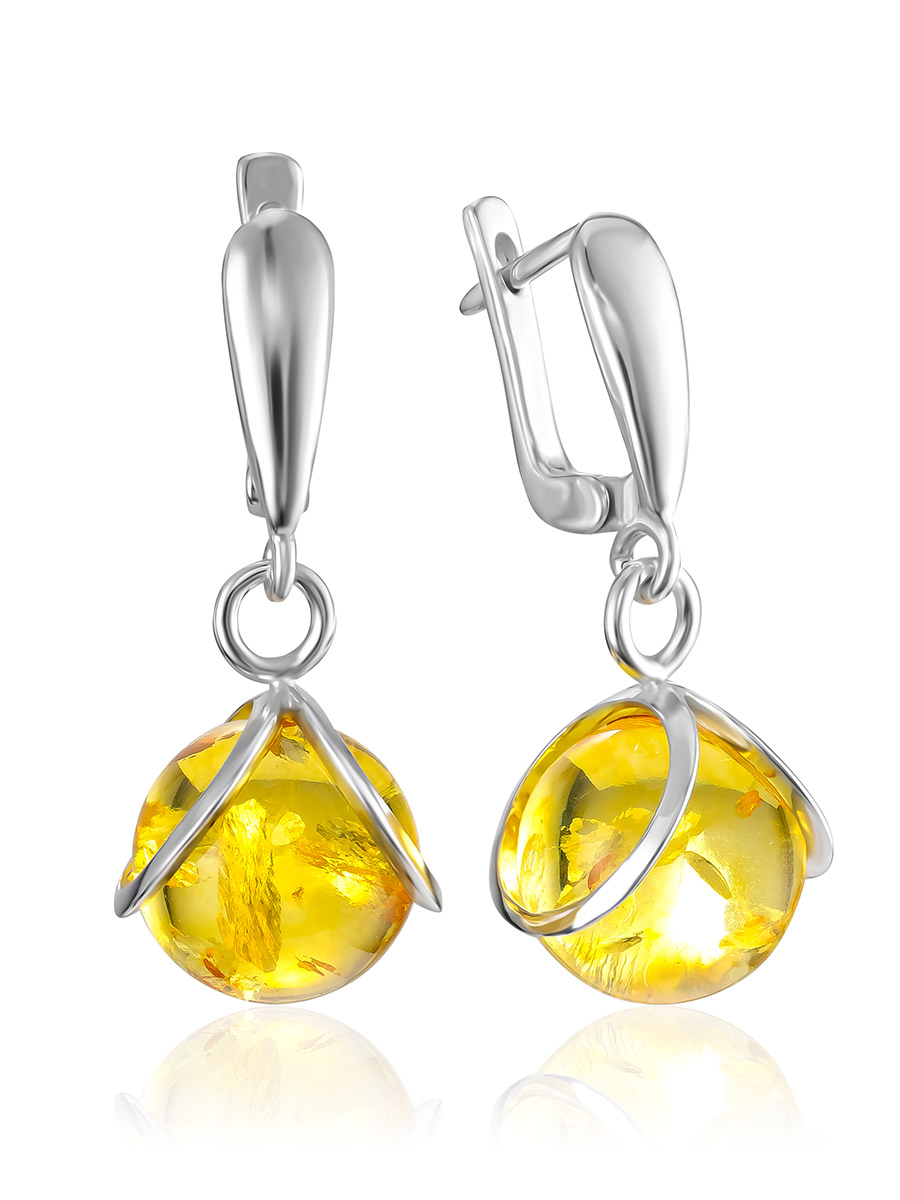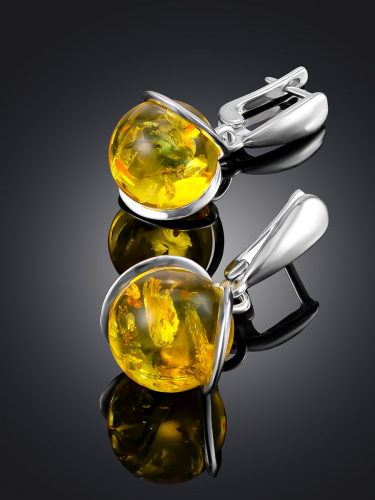 Серьги «Валенсия» с натуральным искрящимся янтарём лимонного цвета
