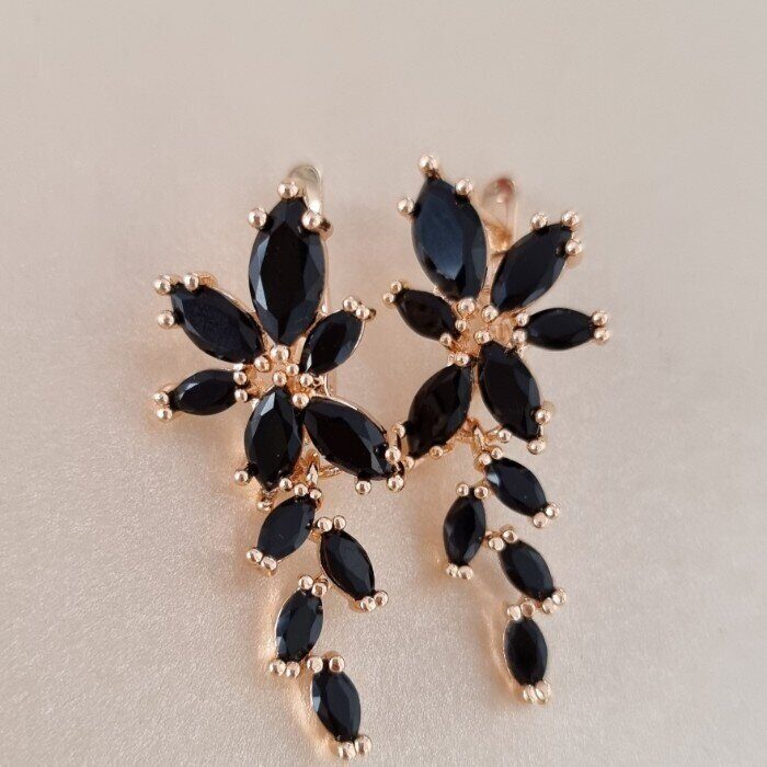 Серьги висячие цветы ювелирная бижутерия коллекция "Дубай" покрытие: позолота, вставка: фианиты, цвет: черный, арт.214.616