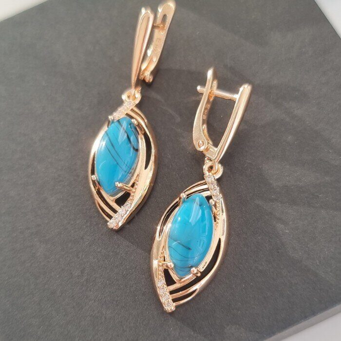 Серьги висячие под бирюзу, покрытие позолота, коллекция "Дубайское Золото", арт. 314.454