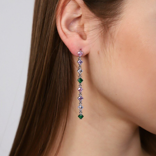 Описание Длинные висячие серьги с дорожкой из ярких камней. Шикарное украшение, которе обратит на себя внимание на вечернем мероприятие. Ювелирные серьги выполнены из качественного бижутерного сплава, они не темнеют и не окисляются со временем, так как имеют стойкое к стиранию покрытие. Материал, из которого изготовлены сережки - гипоаллергенный, что свойственно качественной фабричной бижутерии. Материал: бижутерный сплав, фианиты. Размер: 6,7*0,5 см. Замок: гвоздик. Вес: 7 гр.