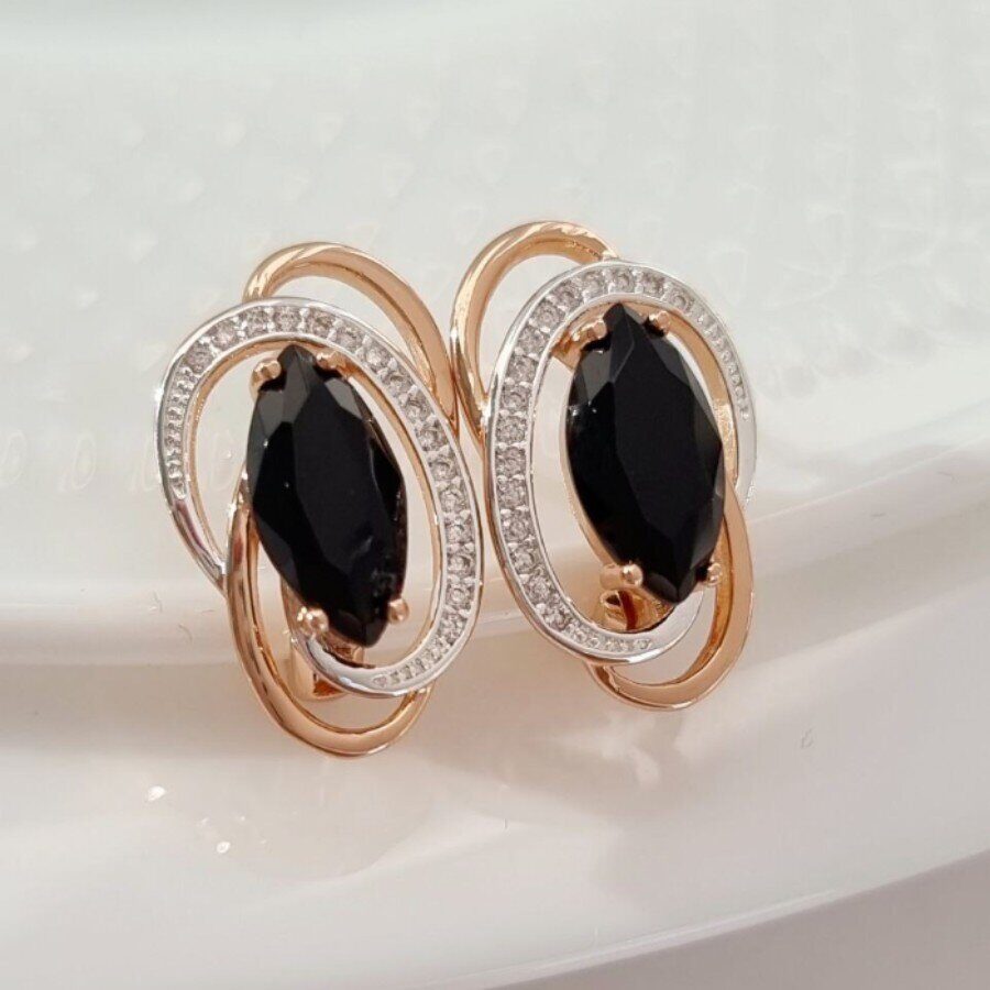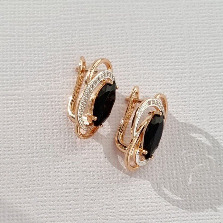 Серьги висячие с черными камнями, покрытие позолота 585 пробы, арт.212.053