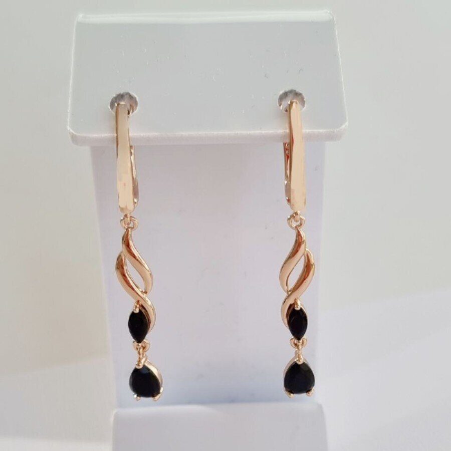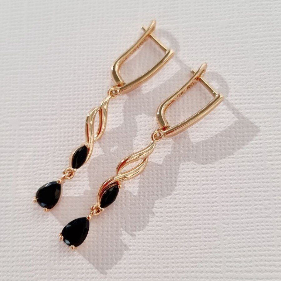 Серьги висячие с черными камнями, покрытие позолота 585 пробы, арт.212.048