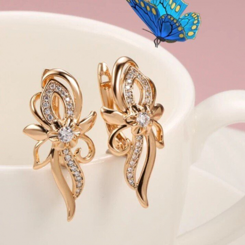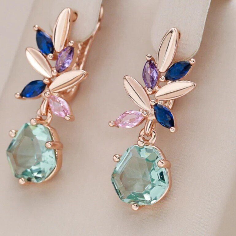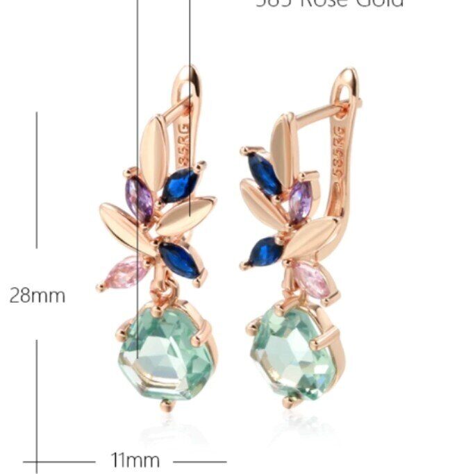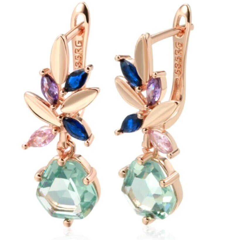 Серьги висячие с камнями, покрытие позолота 585 пробы,H1745, арт.212.008