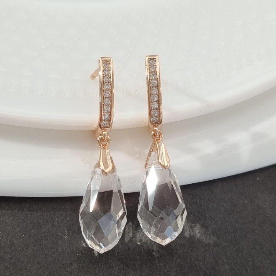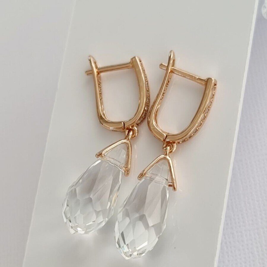 Серьги висячие с прозрачными камнями, покрытие позолота 585 пробы, арт.212.046