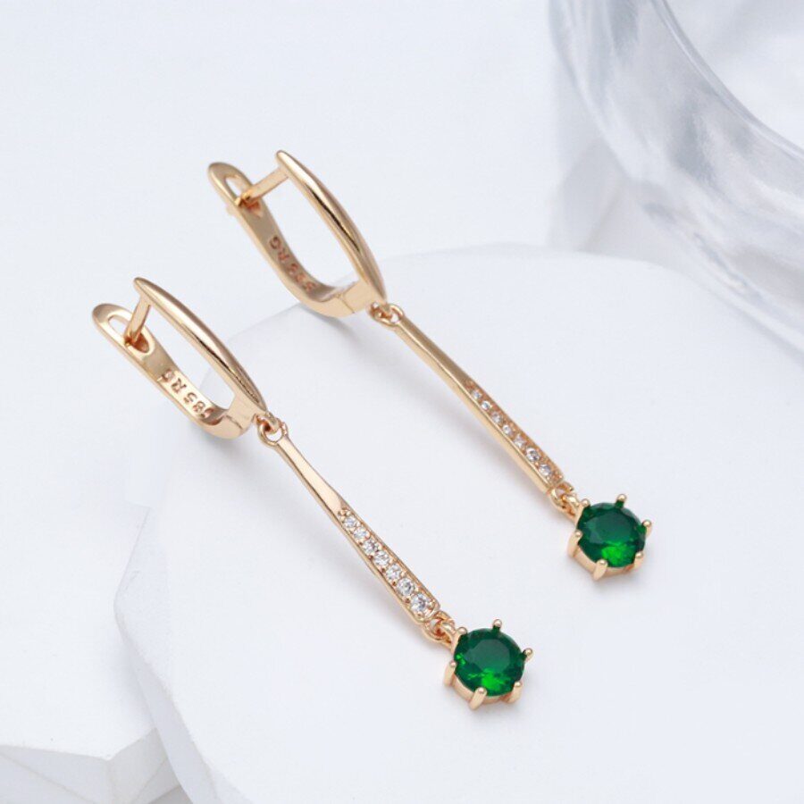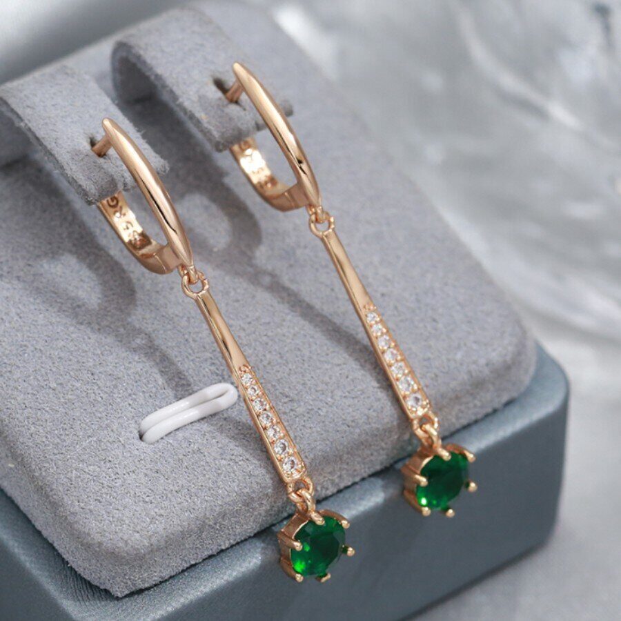 Серьги висячие с зеленым камнем, покрытие позолота 585 пробы,H0571, арт.212.038