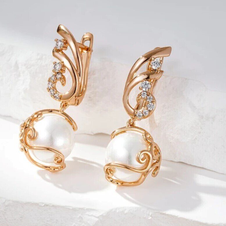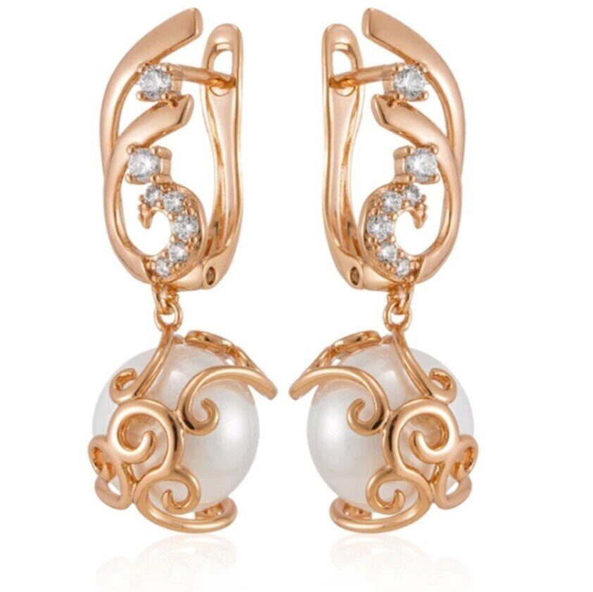 Серьги висячие с жемчугом, покрытие позолота 585 пробы,H1173, арт.212.004