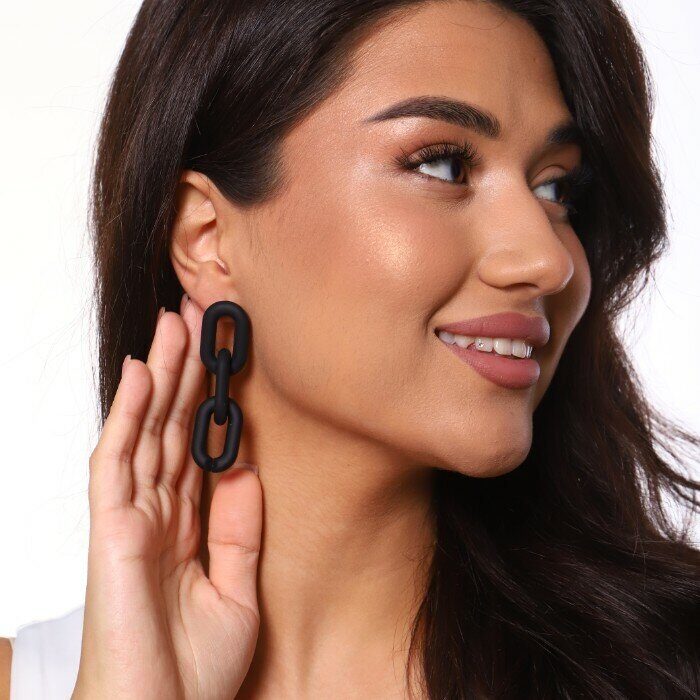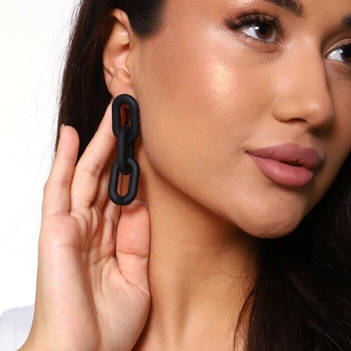 Серьги "Яркая Цепочка" матовые, цвет черный, арт. 017.054