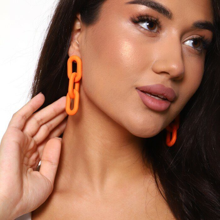 Серьги "Яркая Цепочка" матовые, цвет оранжевый, арт. 017.045