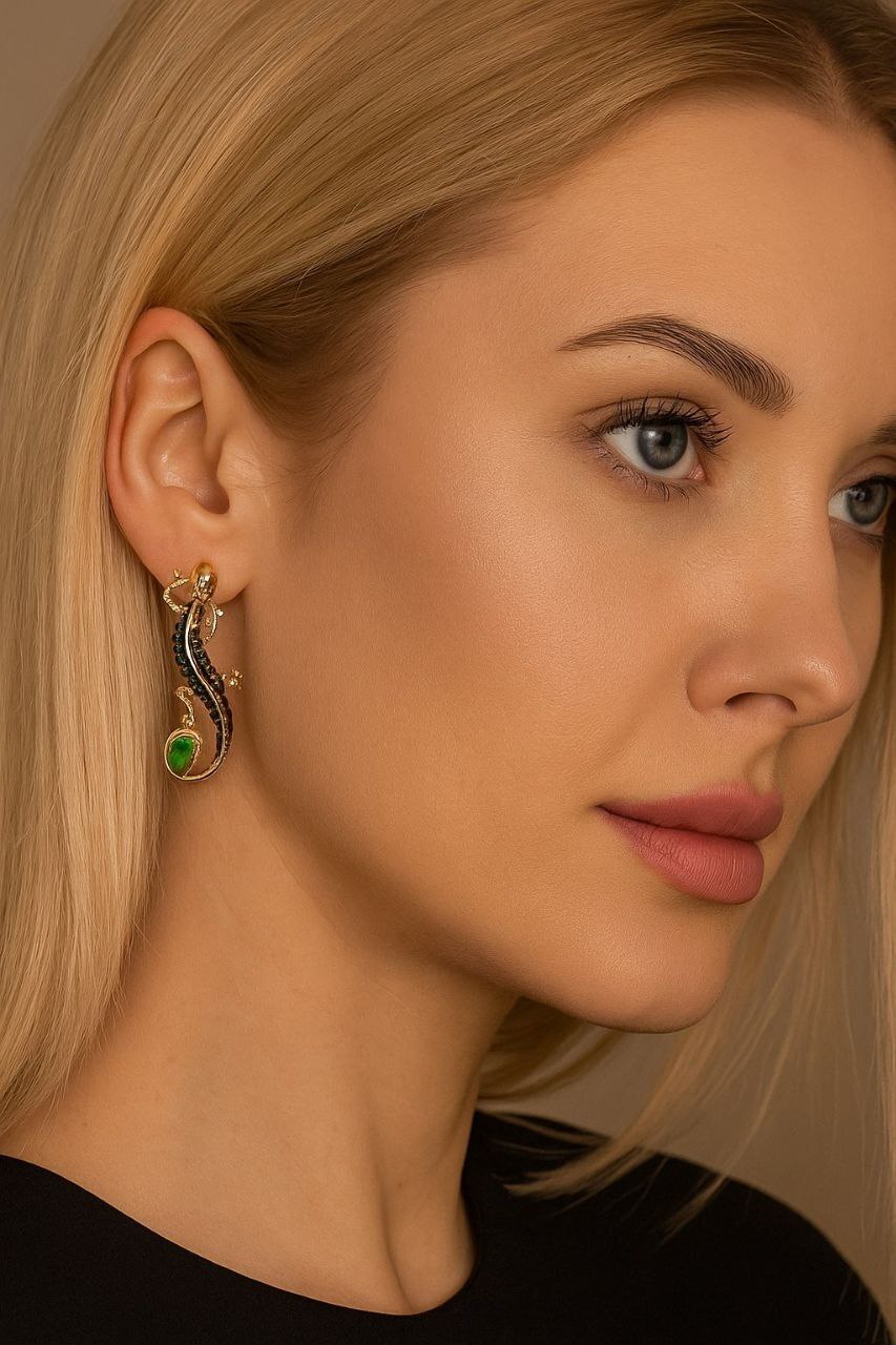 Серьги ящерицы крупные, покрытие позолота 585 пробы,H1698, арт.314.669