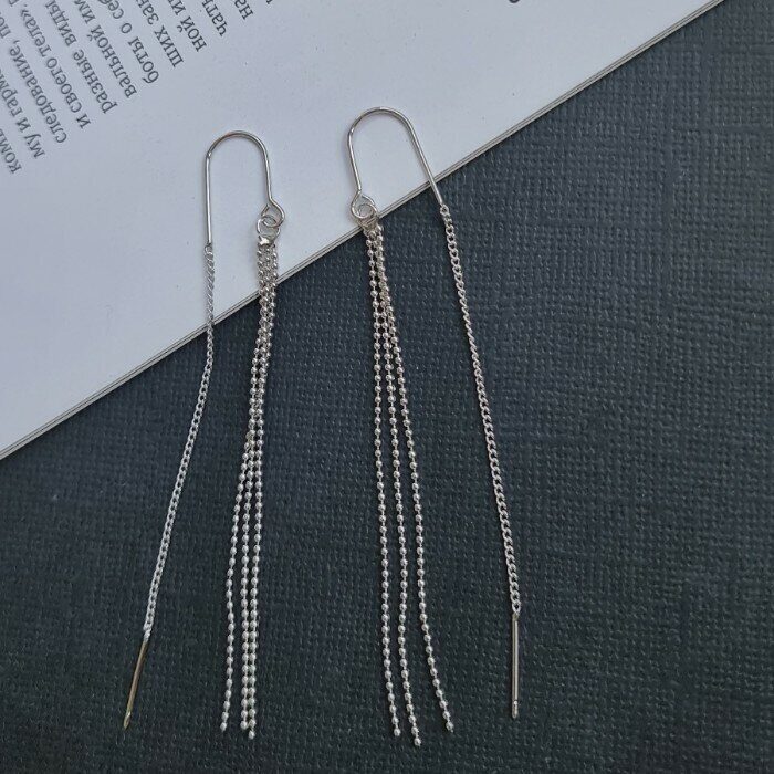 Описание Изысканные серьги, которые подойдут под любой образ. Их можно надеть на торжественный вечер или носить в повседневной жизни - они универсальны. Серёжки лёгкие, Вы не будете испытывать дискомфорт. Размер: 8*0,2 см. Материал: металл. Замок: продёвки. Вес: 3 гр.