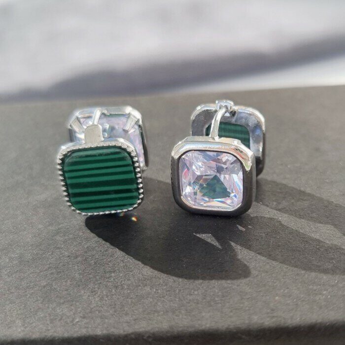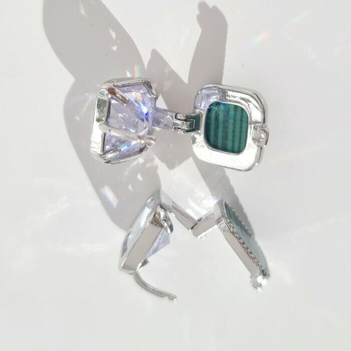 Серьги двухсторонние коллекция "Дубай" покрытие посеребрение, цвет камня:зеленый, прозрачный,24149, арт.947.553