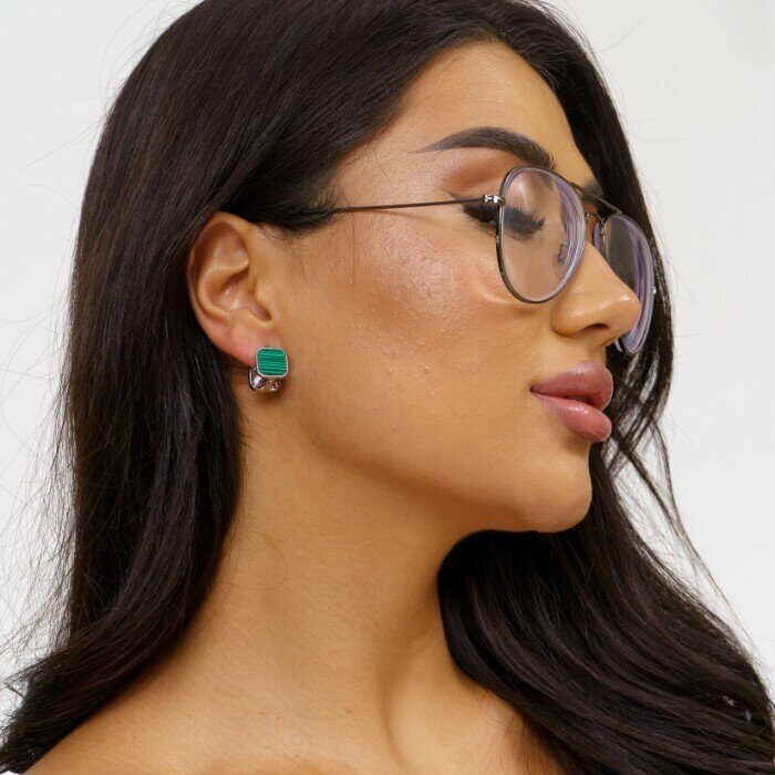 Описание Размер: 1,3*1,1 см. Замок: конго. Материал: бижутерный сплав. Ювелирное стекло. Вес: 7 гр.