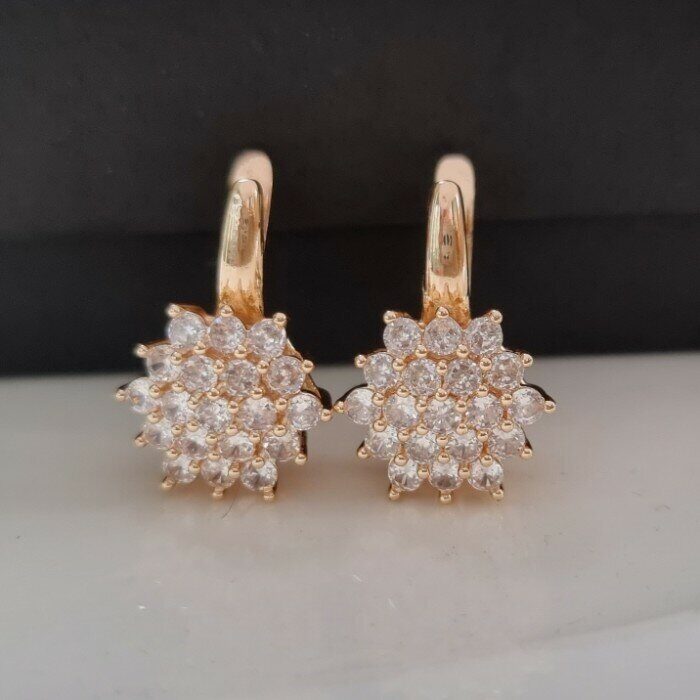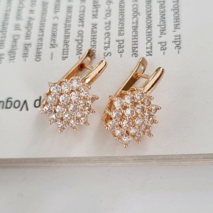 Серьги ювелирная бижутерия коллекция Дубай, покрытие позолота, цвет камня: белый прозрачный,4412380, арт.214.277