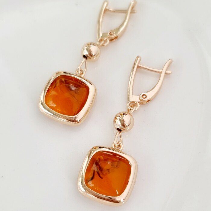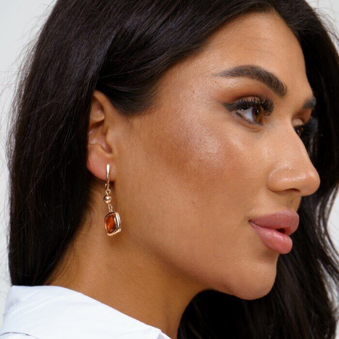 Серьги коллекция "Дубай" покрытие позолота, камень янтарь,37115,арт.214.309