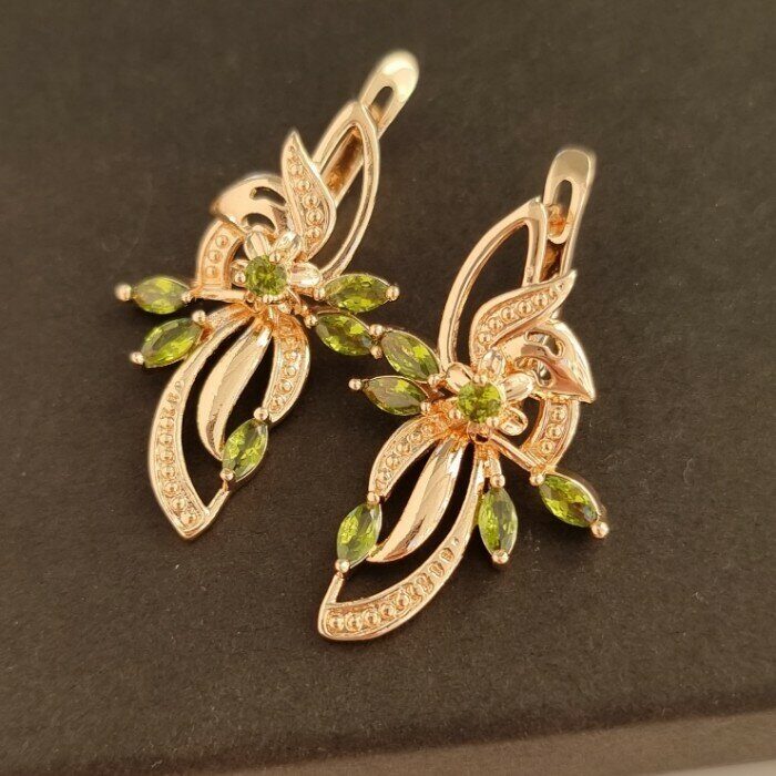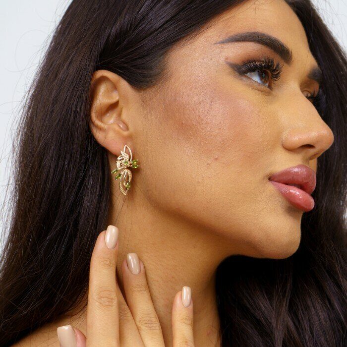 Серьги коллекция "Дубай" покрытие позолота, цвет камня: зеленый, 27127, арт.214.333