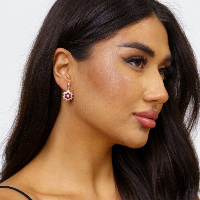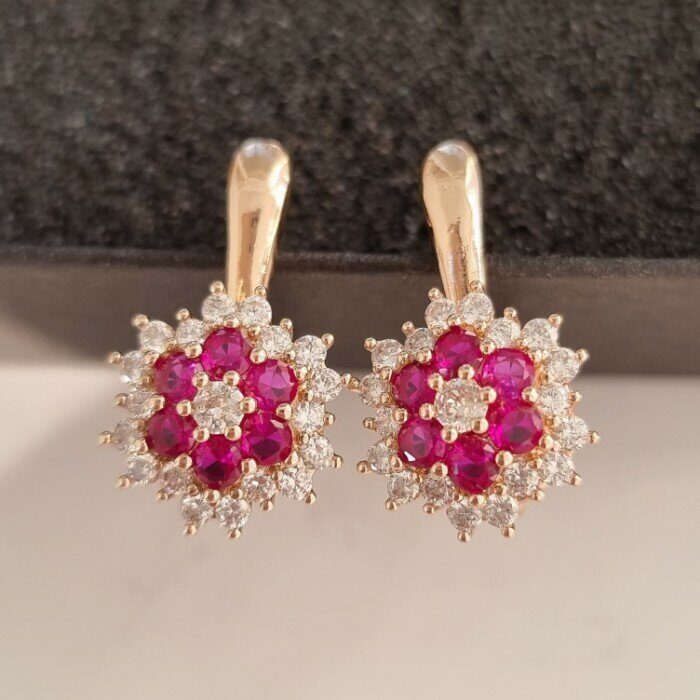 Серьги коллекция "Дубай" покрытие позолота, цвет камня: прозрачный, красный, 3713905, арт.214.335