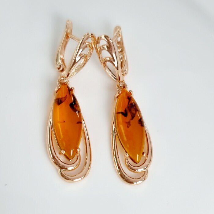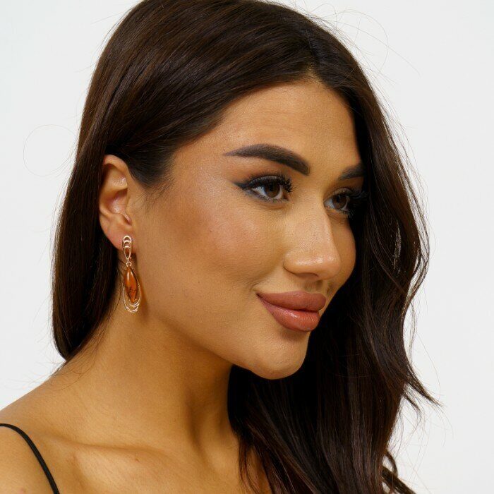 Серьги коллекция "Дубай" покрытие позолота, камень янтарь,арт.214.359