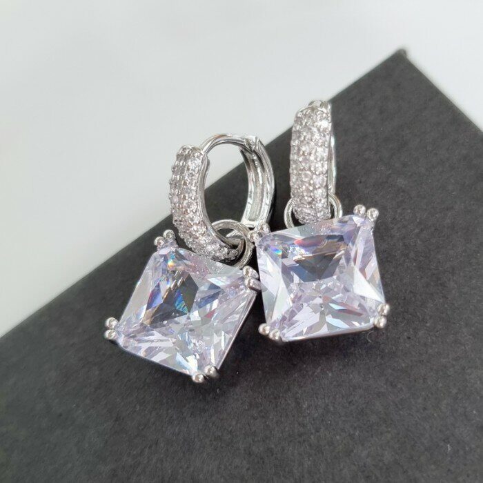 Серьги ювелирная бижутерия коллекция "Дубай" посеребрение, с прозрачным квадратным камнем,20409, арт.215.100