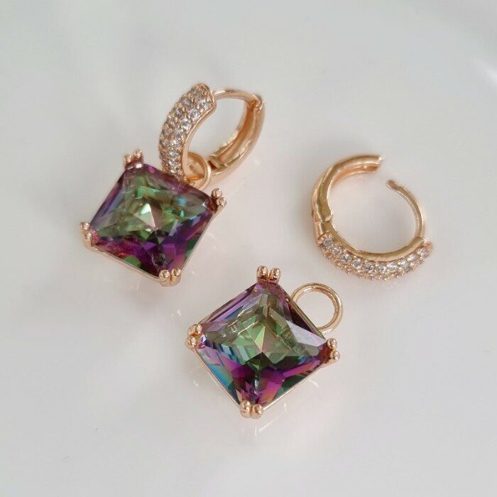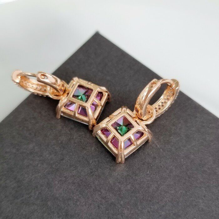 Серьги ювелирная бижутерия коллекция "Дубай" позолота, с квадратным камнем цвет: мистик,20409, арт.215.097