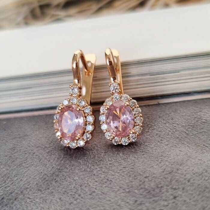 Серьги ювелирная бижутерия коллекция "Дубай" позолота, цвет камня: розовый, 351492,арт.215.222