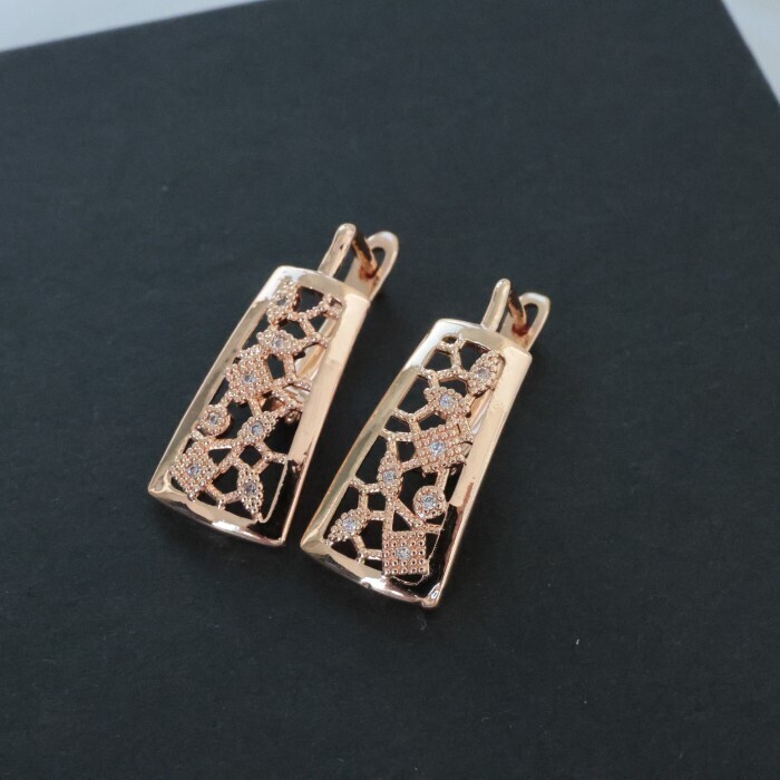 Серьги ювелирная бижутерия Дубайское золото ажурные покрытие позолота, вставка: фианиты, цвет: прозрачный, арт.216.302