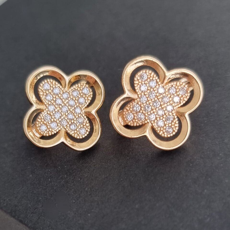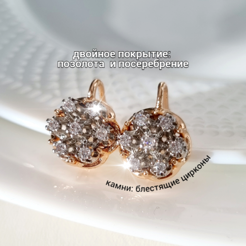 Серьги ювелирная бижутерия Дубайское золото, покрытие позолота, вставка: фианиты, 053, арт. 216.009