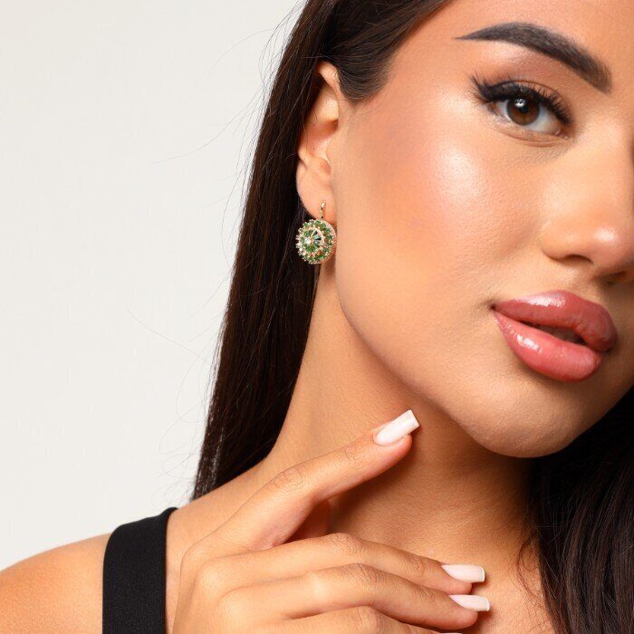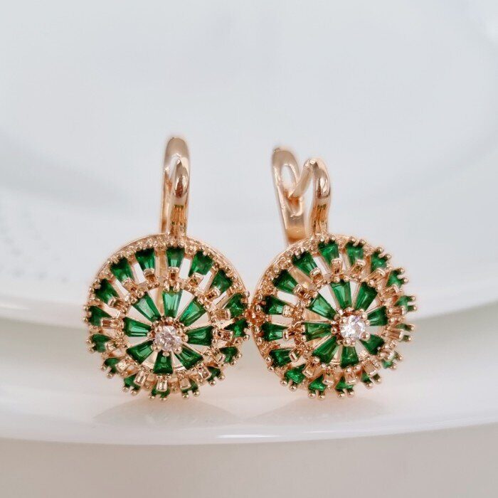 Серьги ювелирная бижутерия Дубайское золото, покрытие: позолота, вставка: фианиты, цвет: изумрудно-зеленый, арт.214.636