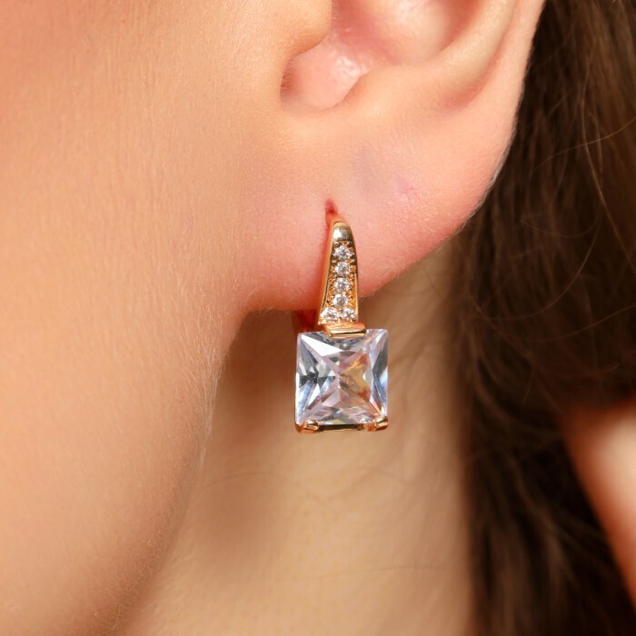 Серьги ювелирная бижутерия Дубайское золото, покрытие позолота, вставка: фианиты, цвет: прозрачный, арт.213.374