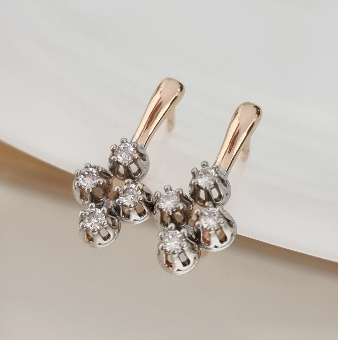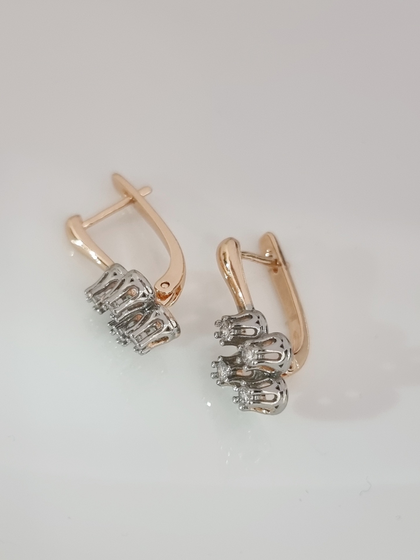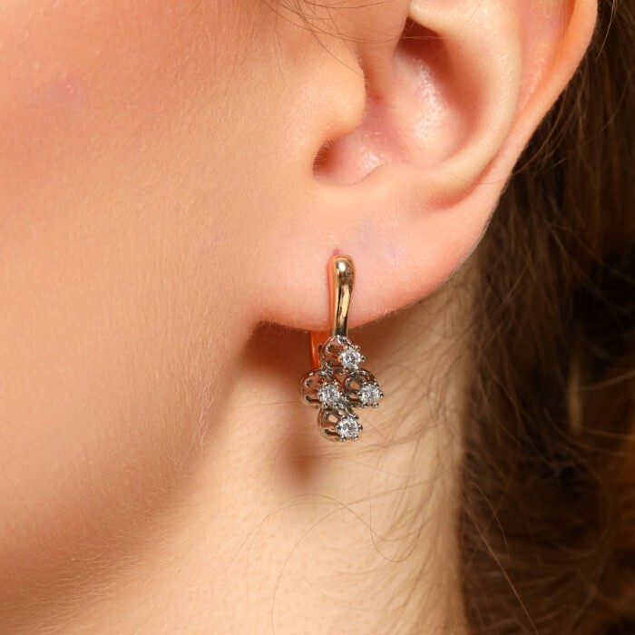 Серьги ювелирная бижутерия Дубайское золото, покрытие: позолота, вставка: фианиты, цвет: прозрачный, арт.213.392