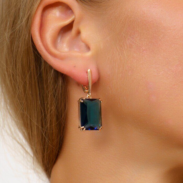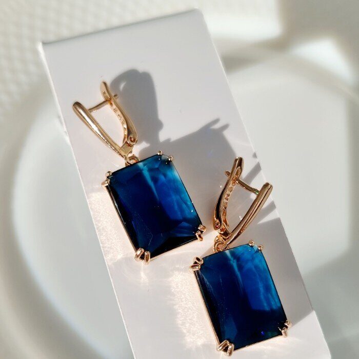 Серьги ювелирная бижутерия Дубайское золото с крупным камнем, покрытие позолота, цвет синий, арт. 214.721