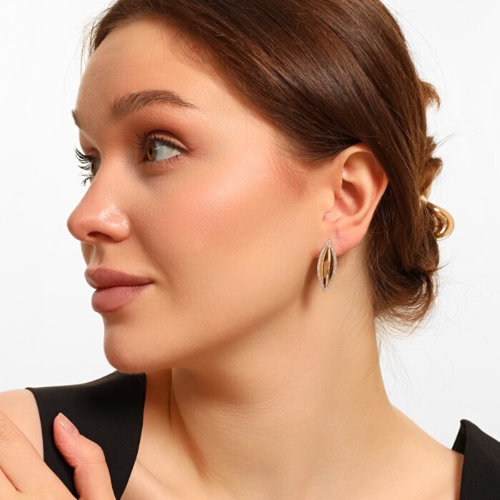 Серьги ювелирная бижутерия Дубайское золото, с покрытием позолотой 18К, вставка: блестящий глиттер, арт.216.214